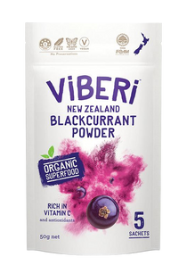 - 20gm (2 sachets) of ViBERi Organic NZ Blackcurrant Powder